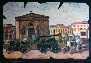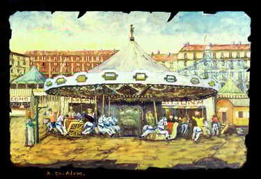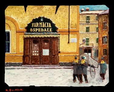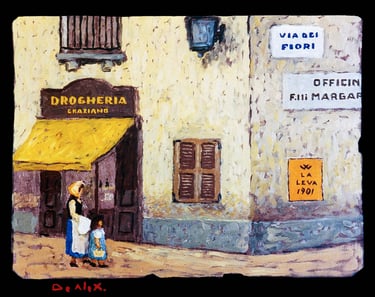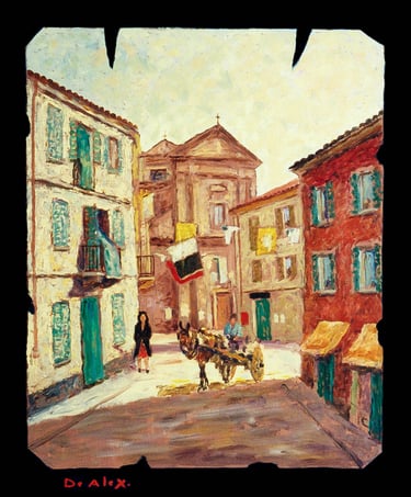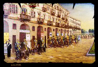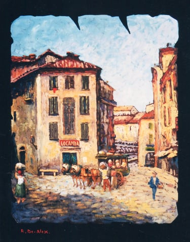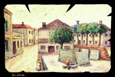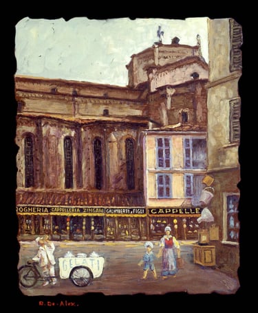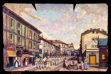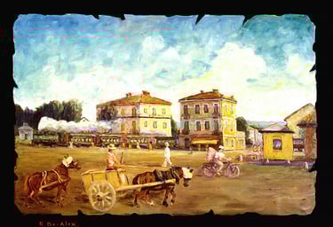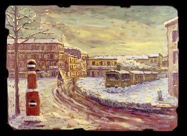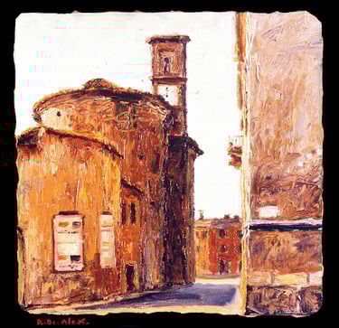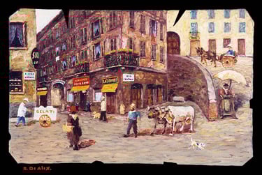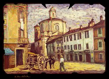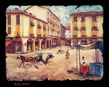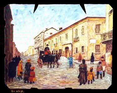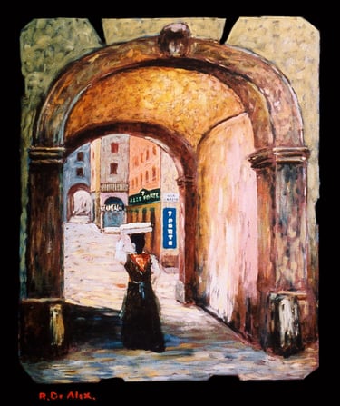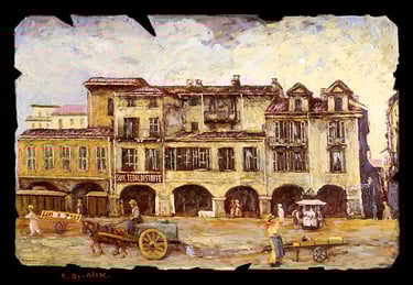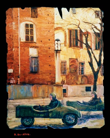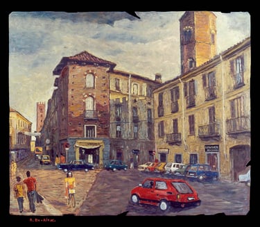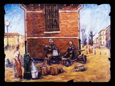 Ritratti di una città vissuta: un omaggio all'architettura e alle persone che l'hanno attraversata, riprodotti con sfumature di nostalgia e ricordi che affiorano dal passato